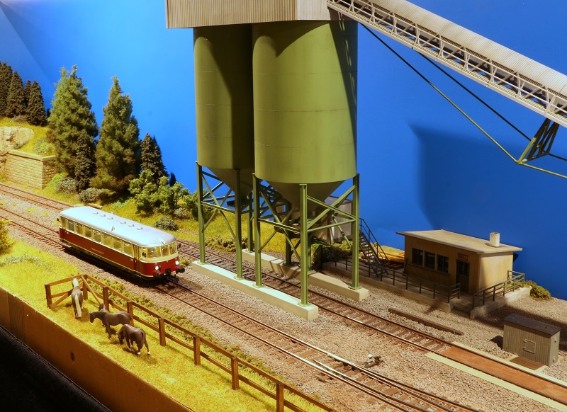 Ein besonderer Hingucker ist die funktionierende Schotterverladung, aus deren Silos die Waggons mit Echtstein-Schotter befüllt werden.